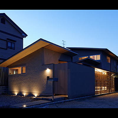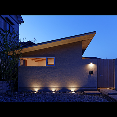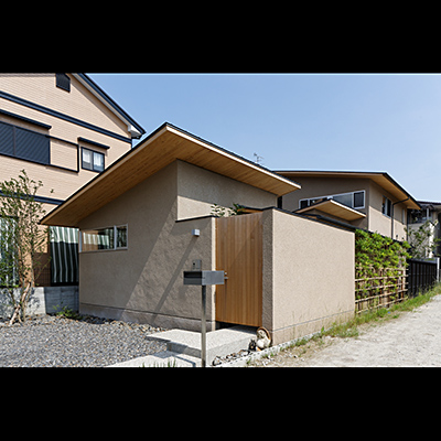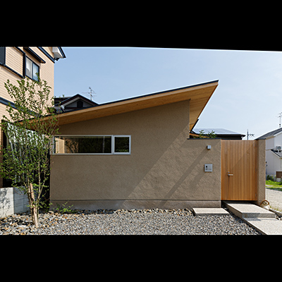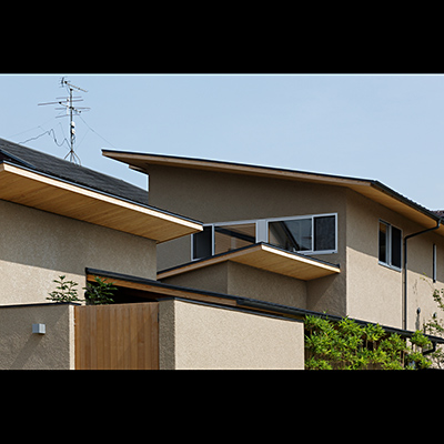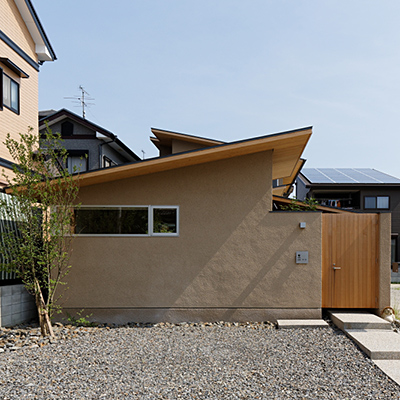 外観は平屋のように見せながら小さな屋根を連続させ周辺に圧迫感の無いように配慮した。