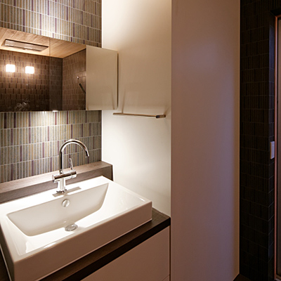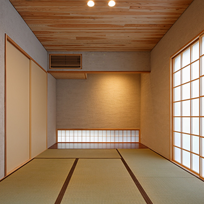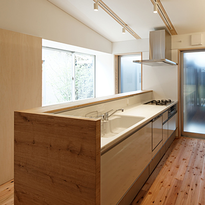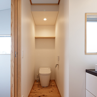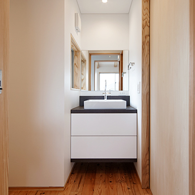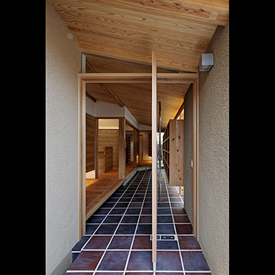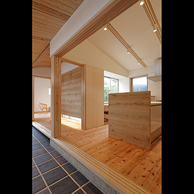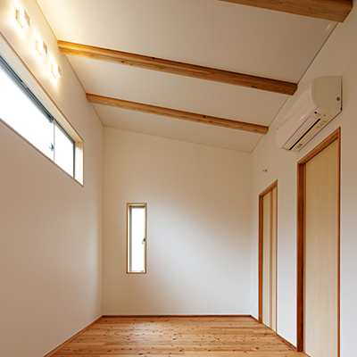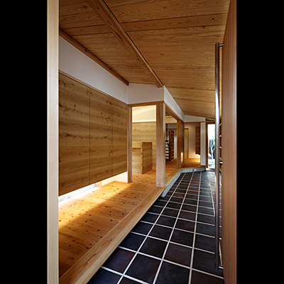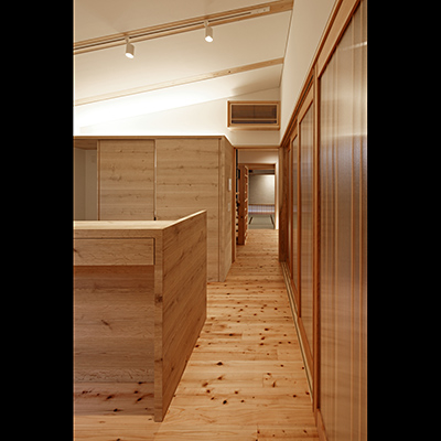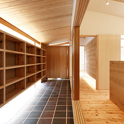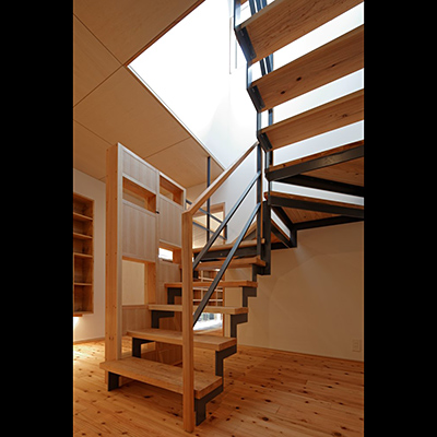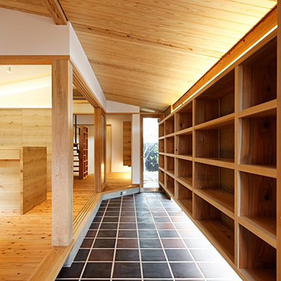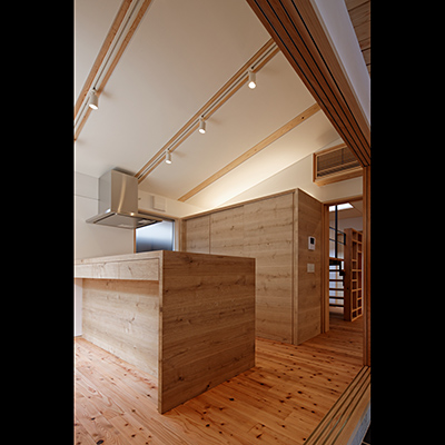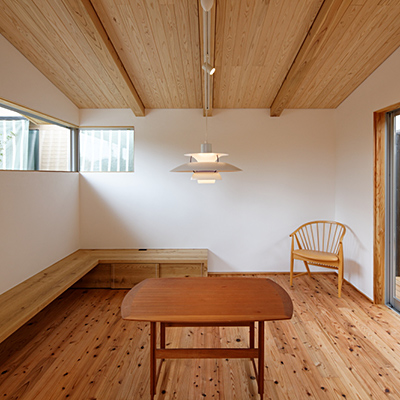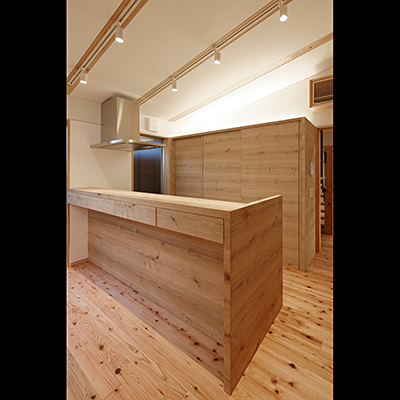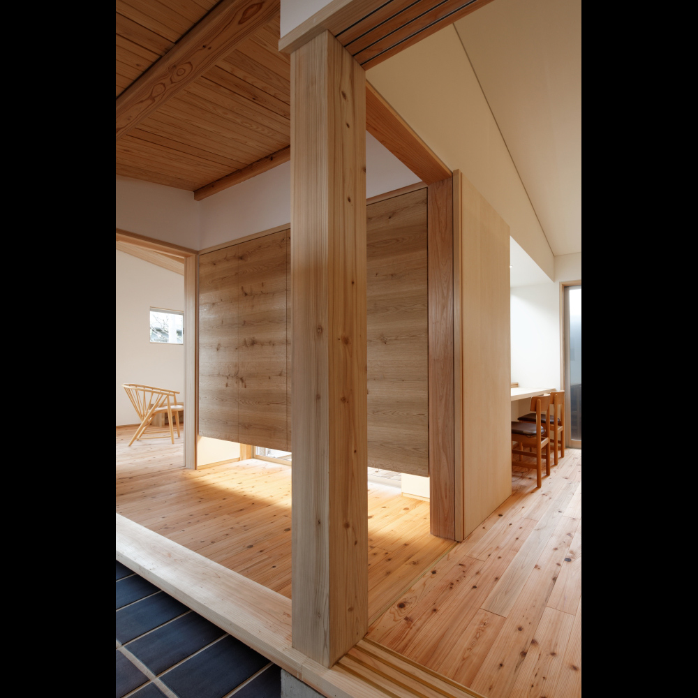 構造材は国産材を内装材は奈良県産材を使用し、地域循環型住宅としての配慮をした。