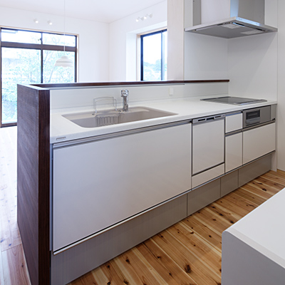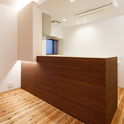 1階は小さく区分けされた部屋を構造的に補強しながら整理し、家族室・食事室・台所とL型に配置し一体的な空間とした。